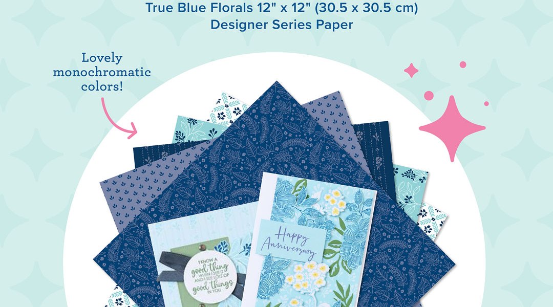The True Blue Florals 12″ x 12″ (30.5 x 30.5 cm) Designer Series Paper is the exclusive Product of the Month for December 2025! Only available until supplies run outโdonโt wait to get yours!