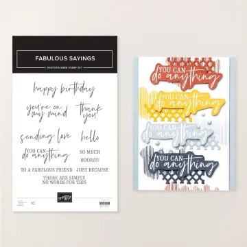 Send thoughtful messages with style using the Fabulous Sayings Stamp Set! This versatile stamping set features all-occasion sentiment stamps for birthdays, thank-you notes, love, friendship, and support cards. The mix of a handwritten script with a classic serif font pair beautifully with a wide range of card making and paper crafting styles.