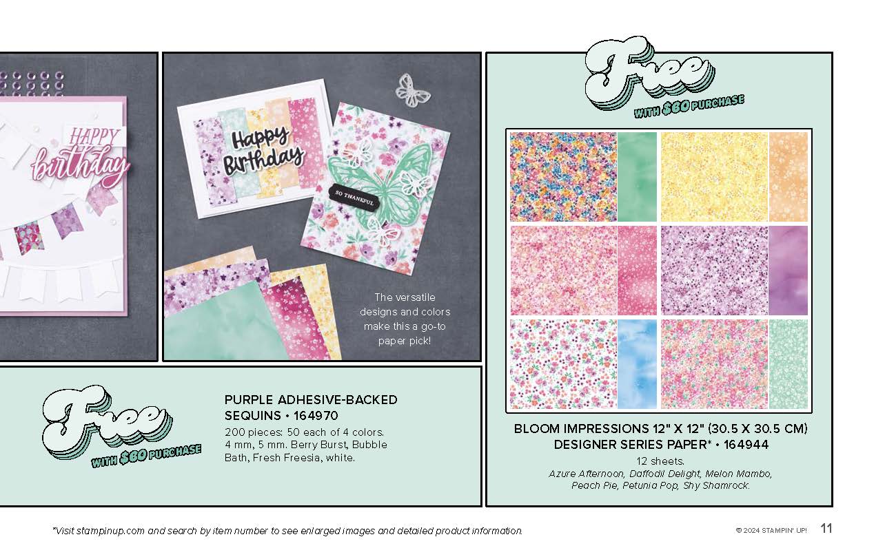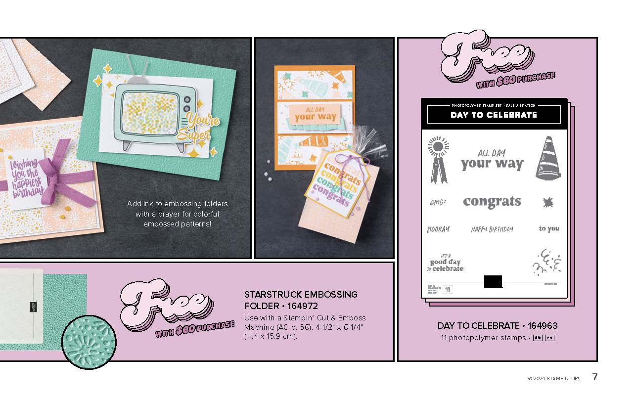 From January 7-February 28, 2025, Stampin’ Up!’s annual Sale-A-Bration event will be available. When you spend $60 USD on any Stampin’ Up! products, you will be able to pick one of the many products in the brochure absolutely free. And there are two special products for placing $120 USD order.