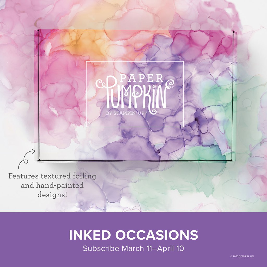 With the move of Paper Pumpkin from paperpumpkin.com to stampinup.com, I missed posting the April Paper Pumpkin kit. I should be receiving mine in the next couple of days. The watercolor alcohol ink designs look gorgeous. This kit makes 9 cards, 3 each of 3 designs and includes textured gold foil on the card bases and sentiments.I don’t know if there will be kits or refills left but you can always check on my website after April 20 to see. I will be posting the May Paper Pumpkin soon.