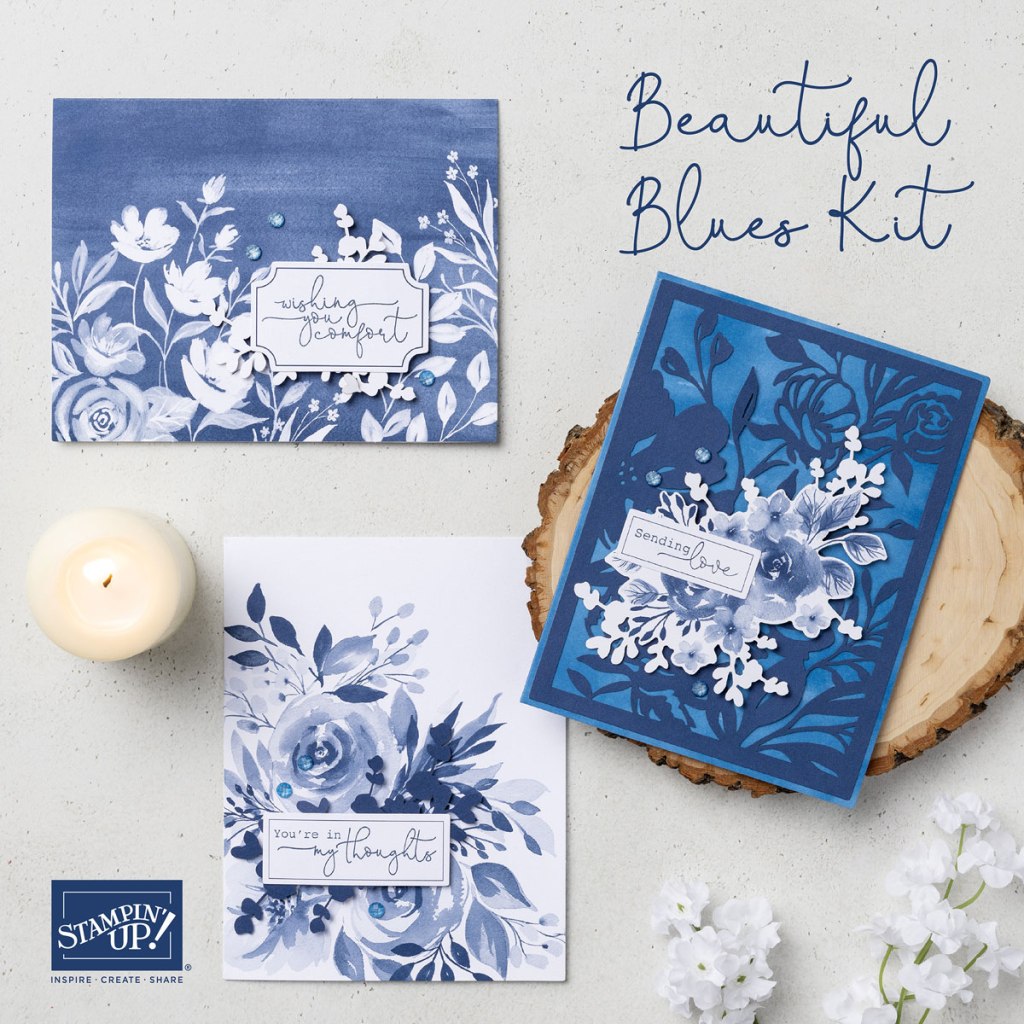 This Month, Stampin’ Up! has released two new card kit collections, Beautiful Blue Skies and Share A Smile.