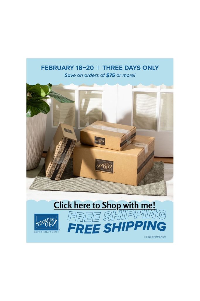 For the next 3 days, beginning February 18-2o, you can receive FREE SHIPPING on all orders of $75 or more. You can shop with me by clicking the button below.