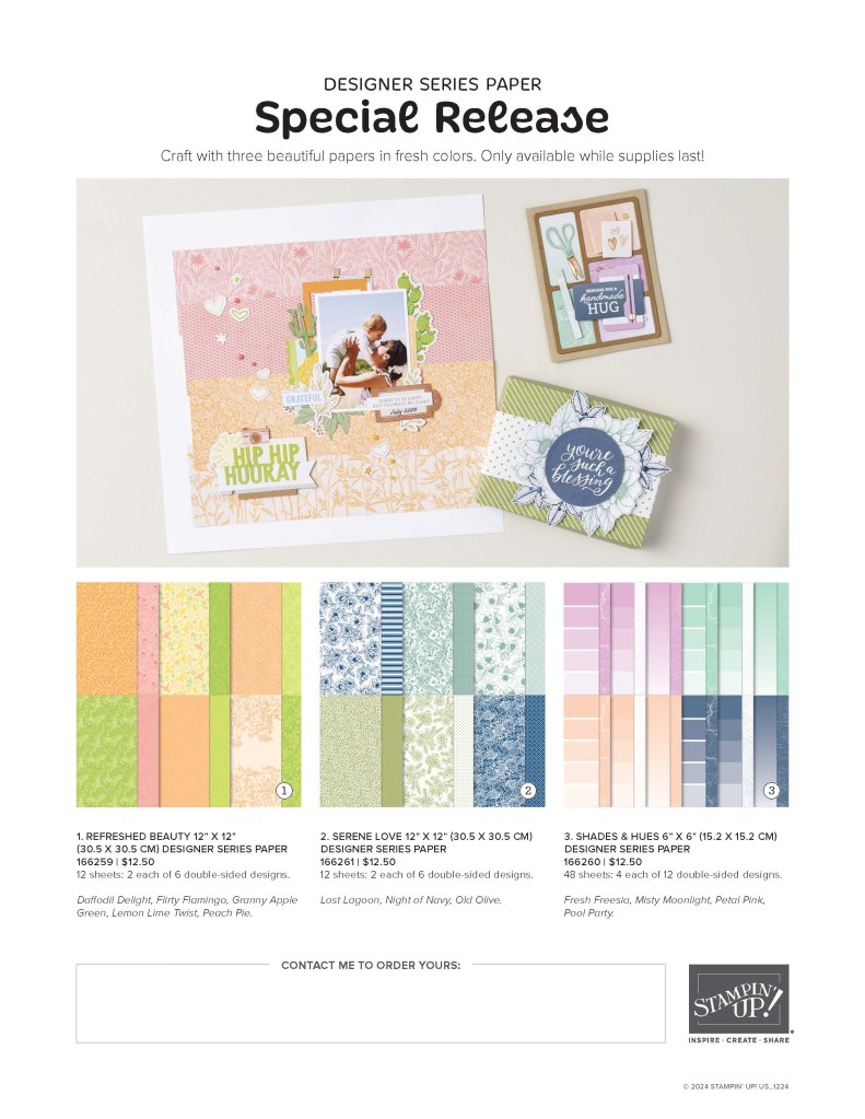 – Features exclusive designs by in-house Stampin’ Up! artists.